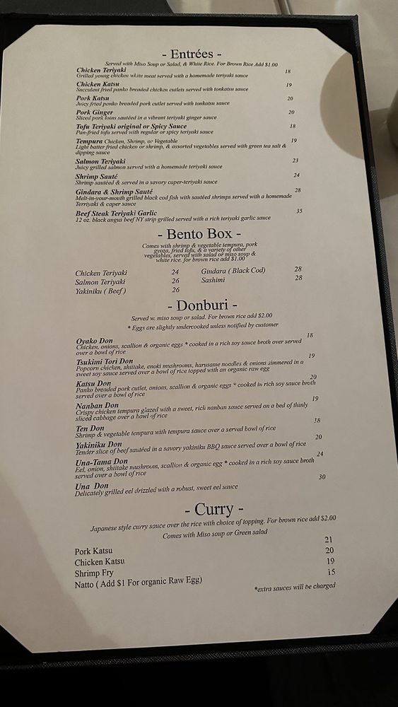 Panko breaded pork cutlet, onions, scallion and organic eggs cooked in rich soy sauce broth served over a bowl of rice. Eggs are slightly undercooked.